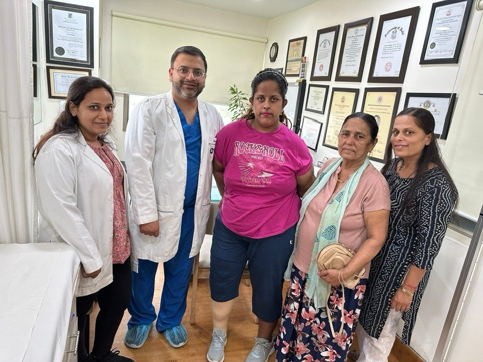 She lost 50 kgs, and finally a prosthetic limb could be attached to her right thigh (which had an above knee amputation).